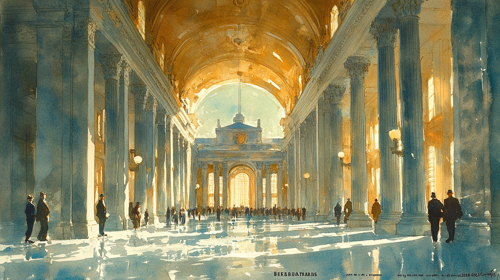 The nineteenth century brought the formalized study of architectural illustration through master-class traditions at institutions like the École des Beaux-Arts in Paris. Students learned to produce exquisite watercolor renderings, ink perspectives, and charcoal studies under the guidance of experienced practitioners. These were deeply skilled, time-intensive productions — a single presentation rendering could take weeks.